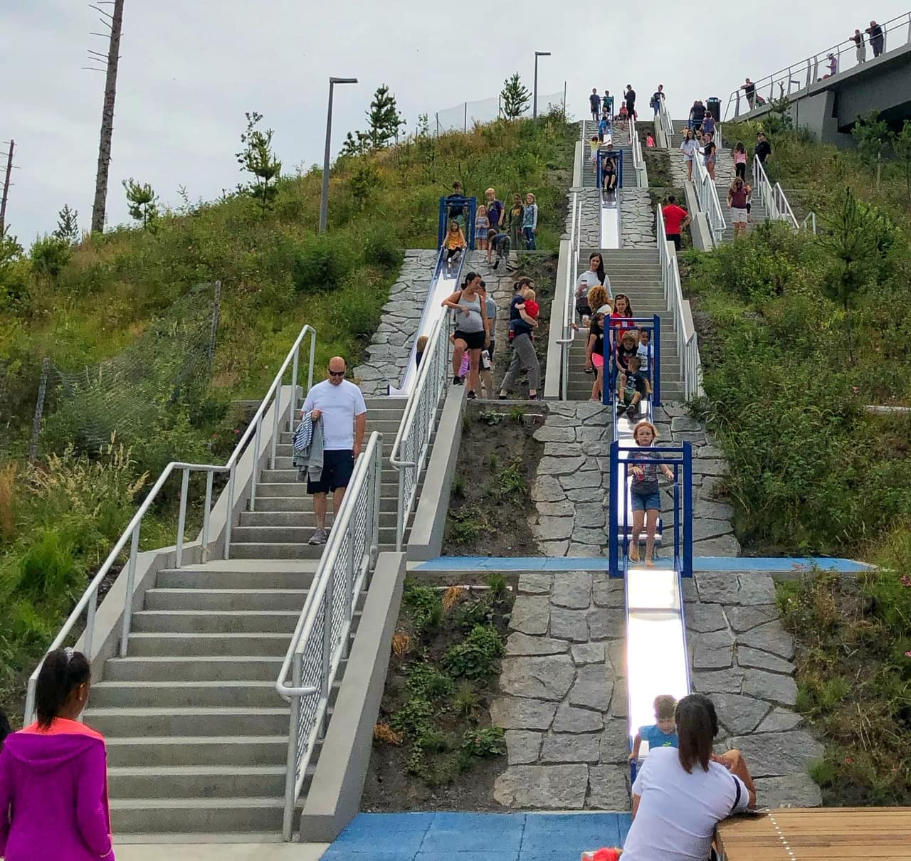 We enjoyed the spray park, took a Gondola ride over the falls, and there is even an amusement park in the area (and often free festivals). The playground itself is a real novelty though – it’s getting harder to find big metal slides anymore and my kids love them!