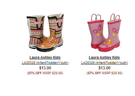 Kids Laura Ashley Rain Boots for $13 shipped! (cheaper then I could find at Target or Walmart), and lots of cute styles to pick from!