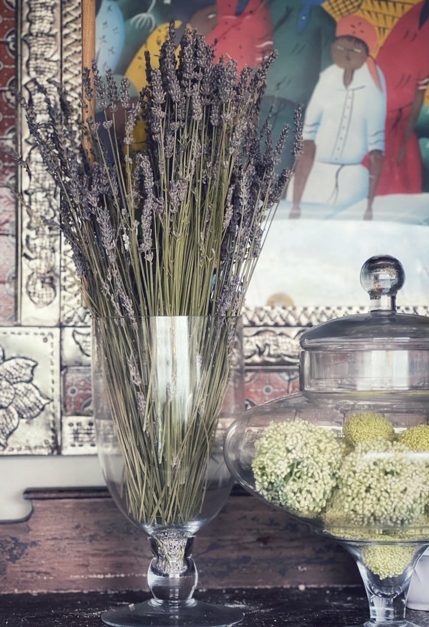 And this one here is made up of a couple of $0.99 cent bundles of dried lavender I grabbed at my local Ikea, and added to a hurricane vase I used to use for entertaining (you might be surprised how many cute things you might find in your own kitchen to upcycle into plant holders). This makes it so you can enjoy these ideas all year long.