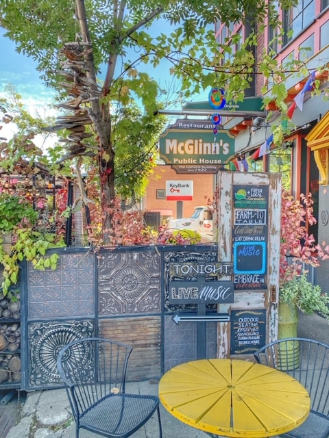 A few blocks over and up from the main road in downtown, is McGlinns. It had been described to us as having a bit of a Portland vibe, and that rang true to us. It had the farm to table freshness, and lots of delicious food and drink offerings! Depending on the weather, there is this very cute outdoor seating spot, but it was a bit cool so we chose to eat inside. With lots of woods, and fun lighting, it has a bit of a pub feel indoors.