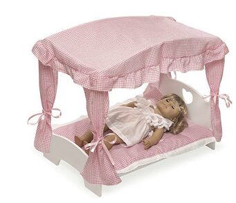 I didn’t realize that Walmart also sells 18 inch doll furniture & accessories at significant discounts, called Badger Basket (which fits dolls up to 20″).  I’m not sure if they sell these in the stores, but I did find a fair Badger Basket furniture items & accessories online. The canopy bed shown above is just $24.88 as compared to paying $124 for a canopy bed on the American Girl site. This item got 4 1/2 stars & great reviews from people whose children have American Girl dolls. I didn’t see any clothing online, but you will definitely find fantastic prices on beds & other doll furniture items.