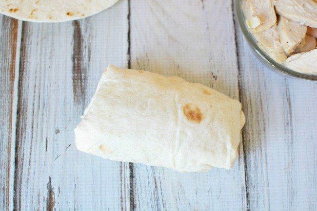 - Fold in the short sides (where you left a half inch room) and then roll the tortilla up