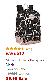 Get backpacks for as low as $9.99 during this sale at Office Depot. We found the black backpack with hearts on sale for just $9.99 right now!