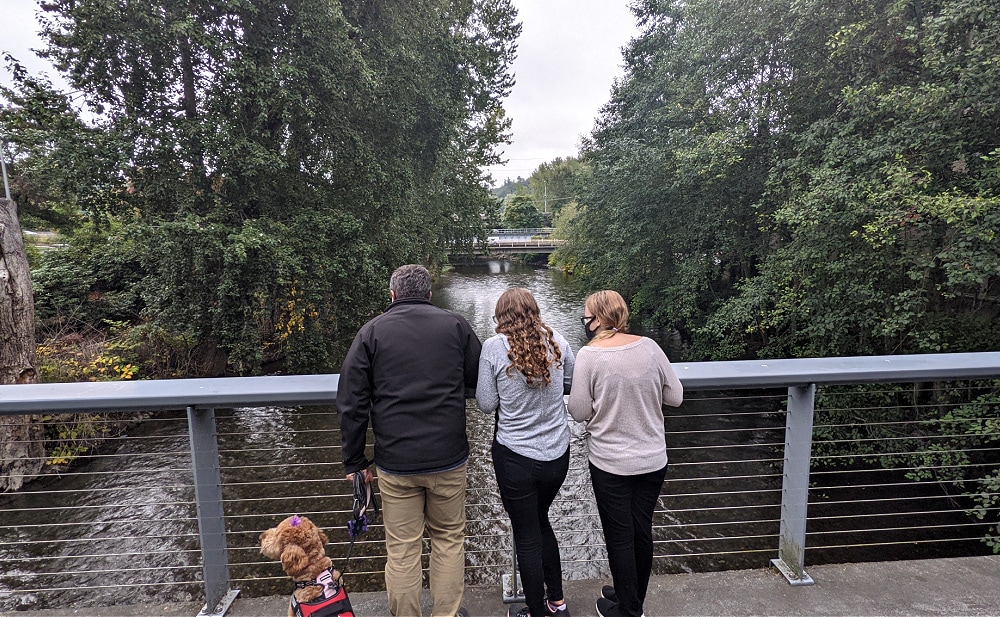 Did you know that the Renton downtown library is built over a bridge on the Cedar River? This is definitely one of the easiest & quickest spots to access the river & see the salmon swimming upstream. You’ll want to look on both sides of the river – we found the salmon on the north side of the river when we were there.
