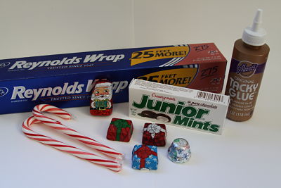 I had a hard time finding the smaller Junior Mint boxes but finally found them at Fred Meyer.  The chocolate Santa and presents were from a Palmer’s Santa Sack, which you should be able to find for under $1 pretty much anywhere.