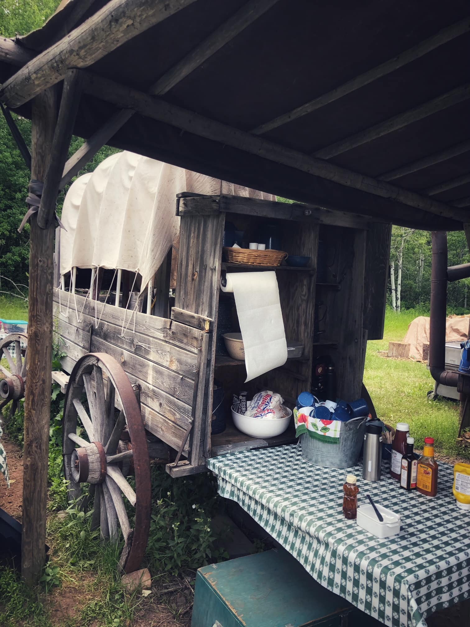 The full Cowboy Dinner experience is approximately a 3-hour experience. You take about 35 to 45 minutes each way, and then the dinner and some entertainment while you are out at the old homestead. Our driver was full of information on the history of the area, the plant life, wildlife, and more. Once you arrive,e there is an area set up where they have a BBQ with the meat options (BBQ Chicken, Steak, and Hot Dogs for our trip), and a table with sides (salad, beans, watermelon, and cornbread). The condiments and drinks were set up in an old wooden wagon, and everyone was very friendly.