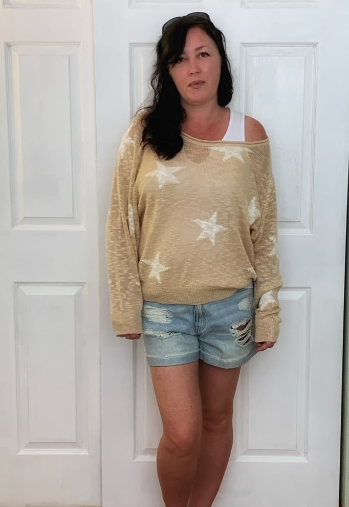 I loved this thin star sweater. I got it to have something to throw on for warm summer evenings as we travel this summer. It is super light weight, and perfect for travel. I really liked this one (it comes in more colors and I am thinking of buying another one).