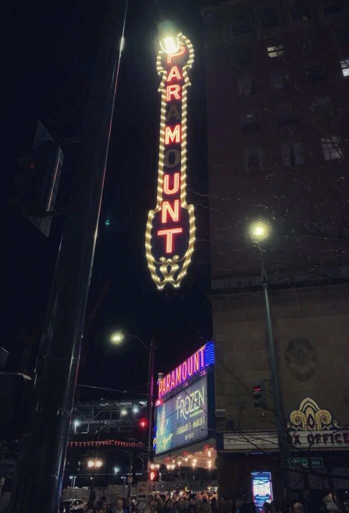 There are multiple entrances to the Paramount, so look for the shortest line to get in. You will want to get there around 20 minutes before the show time at least, to easily get settled. There is merchandise to purchase, as well as food and beverage.
