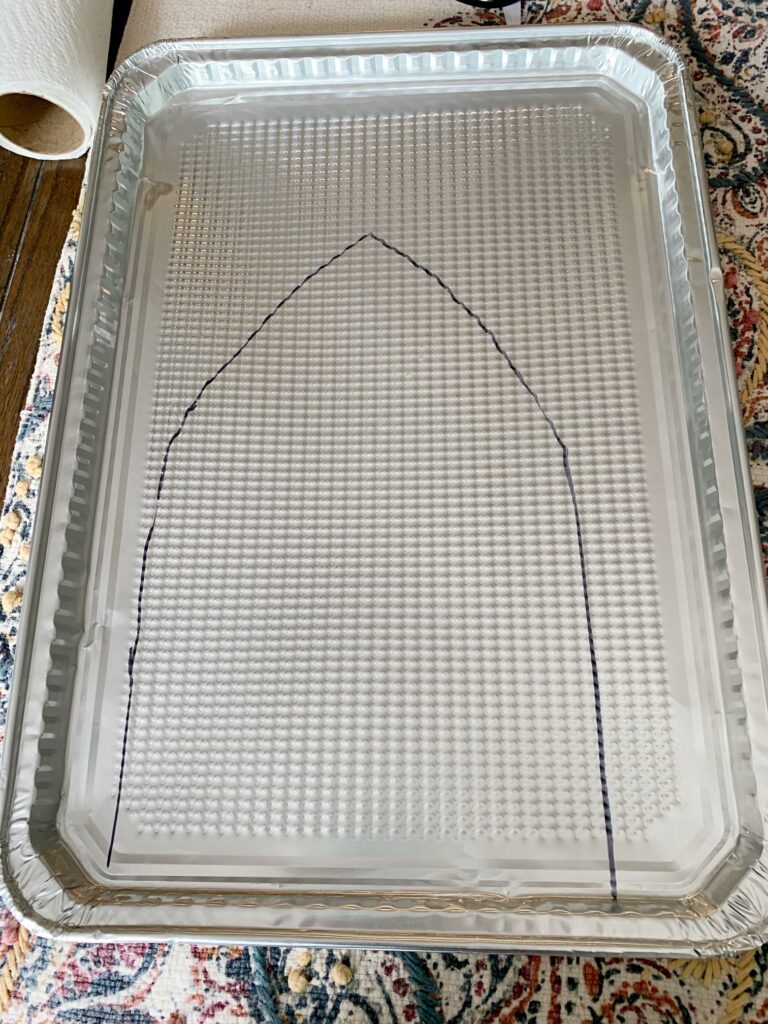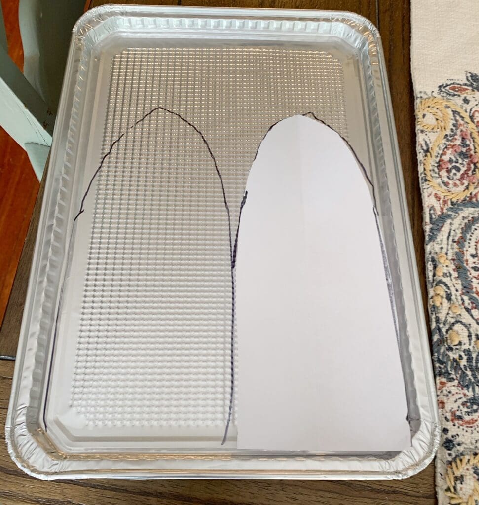 Next transfer your template shape to your tin sheets. I used a sharpie to do this, but you can use a regular pen and just make an indent if you prefer. I knew I was painting mine, so I was not concerned about the lines (or you can just turn them over and make sure any markings are on the backside).