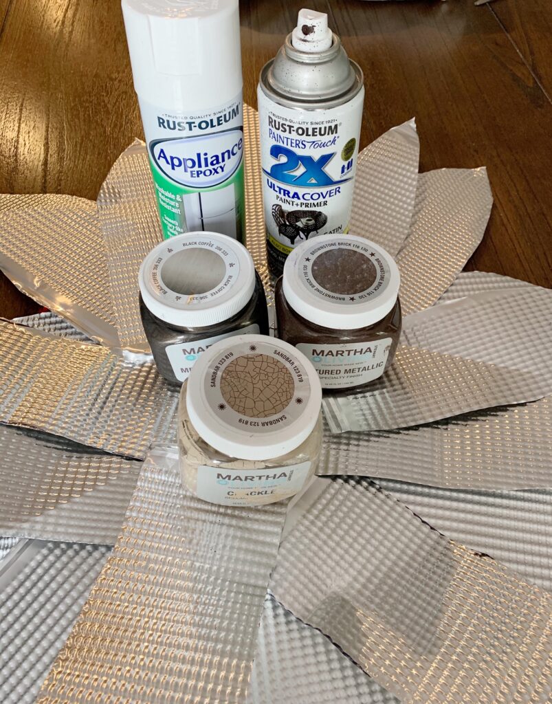 I started by painting mine a bronze metal color with spray paint (front and back). Let it dry completely.
