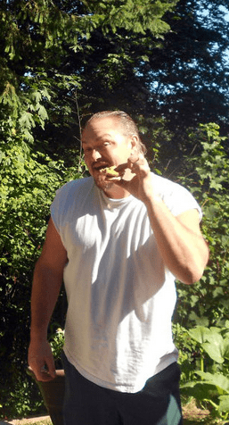 This is *Big Bill*. He likes meat, but that is a meatless burger that you see almost gone in his hands above. He is goofing off for the camera, but he really did enjoy the Dr. Praeger products! In fact he took some home for the next day :)