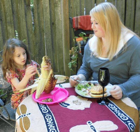 My friend Audry and my daughter enjoying their meatless barbeque food! My daughter asked for “More stars please”. The Littles Broccoli product came in stars and other fun shapes. She loved them.