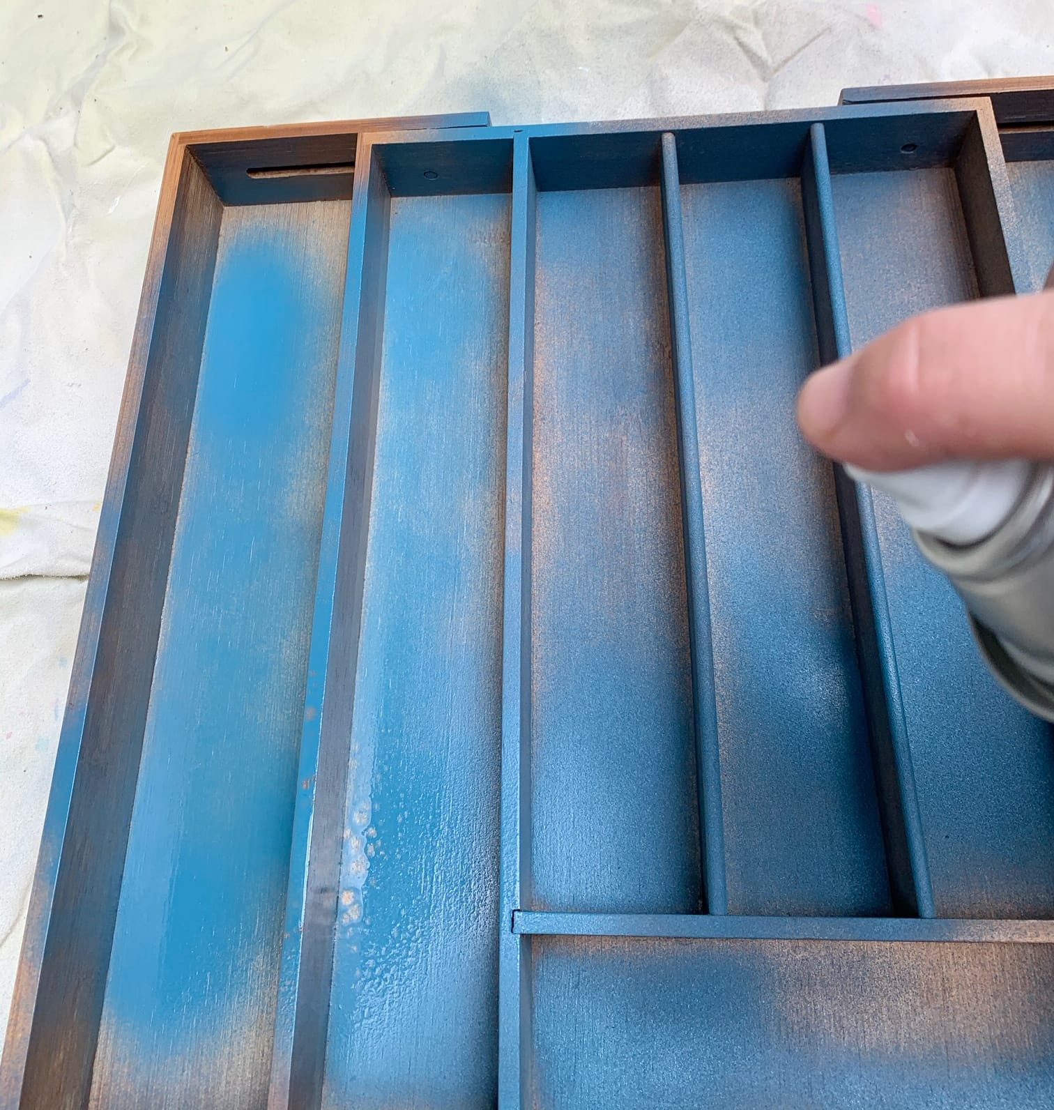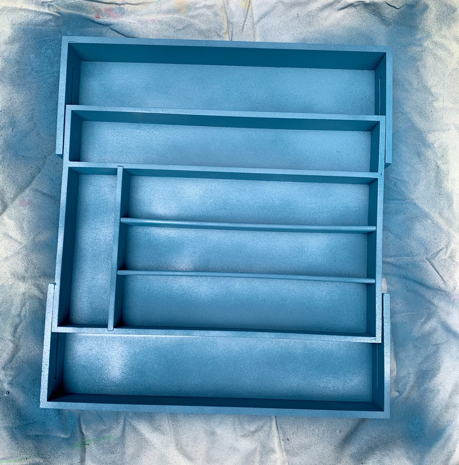 2. Next put a coat of paint on your organizer (I used spray paint, but you could really use just about any kind of paint you choose).