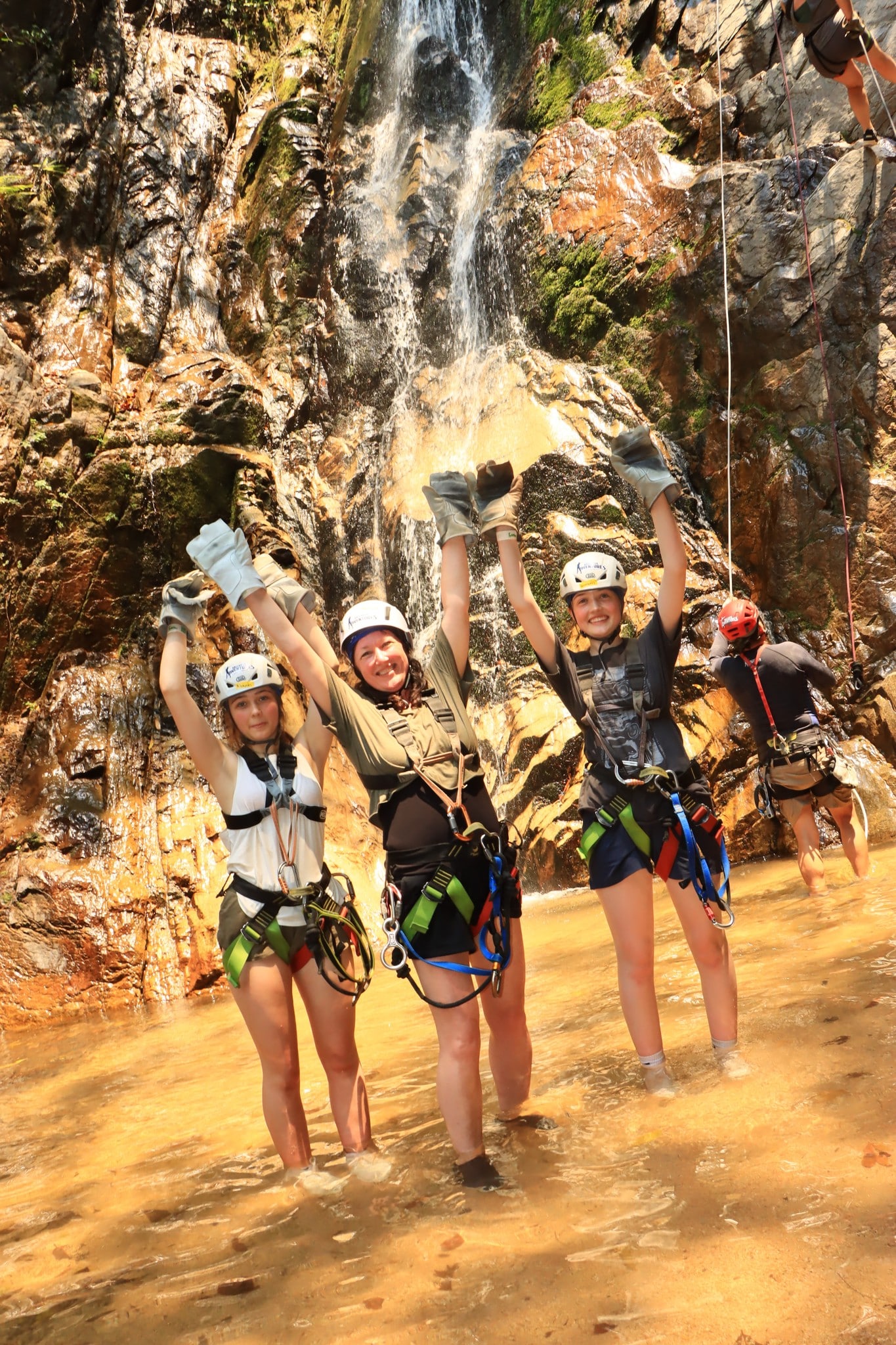 In addition to ziplines through canyons, as well as the roller coaster zipline (my very favorite) and surfing zipline and more, you will also repell down a rock wall next to a waterfall, and manuerver your way through the jungle for the day. It is an action packed adventure that never leaves you bored.