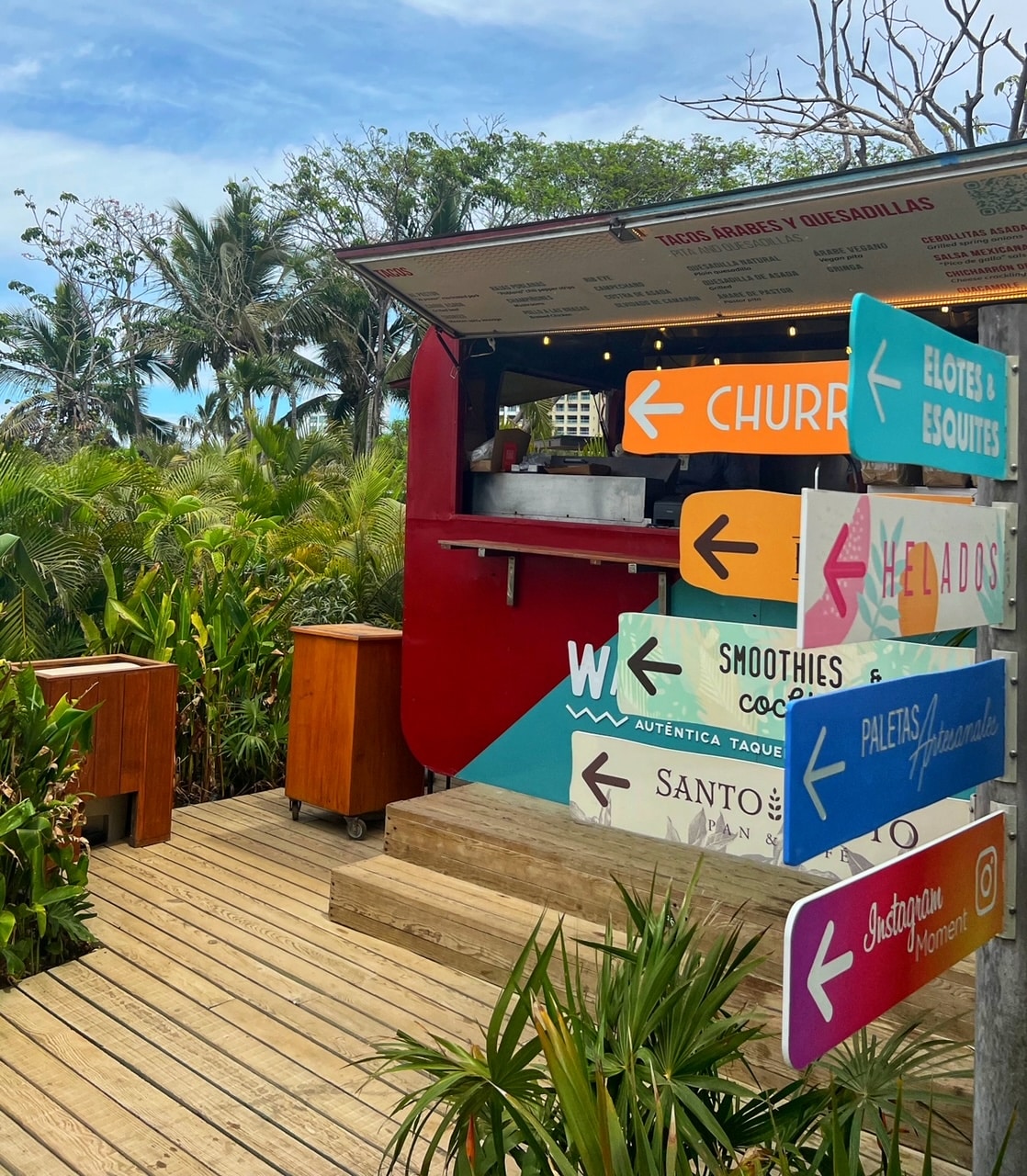 The Salum (shown above). This is an are just off the beach that offers food truck style food options. It lights up at night, and their is often live entertainment too. While the food is affordable here, the lines can get long and finding a spot to eat during the main dinner hours can get tough. This is one you will want to have a plan for if you are trying to feed a family, rather then just grab a snack or a drink. You would have one person hit a different food truck with everyones order, then find a different spot on property or your room to go back and eat at.