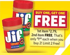 Jif Peanut Butter – $2.79, Buy 1 Get 1 Free