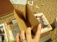 I then covered it with paper. The paper serves a double purpose here. It covers up the messy, cut up bag, and it reinforces the book.