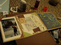 The paper bag provides more than a backing for the scrapbook- it gives you several easy ways to add character. I left the top of one bag open- so I have a pocket. I am not sure what I will put in the pocket yet… maybe a paper snowflake, more pictures, a note- use your imagination!