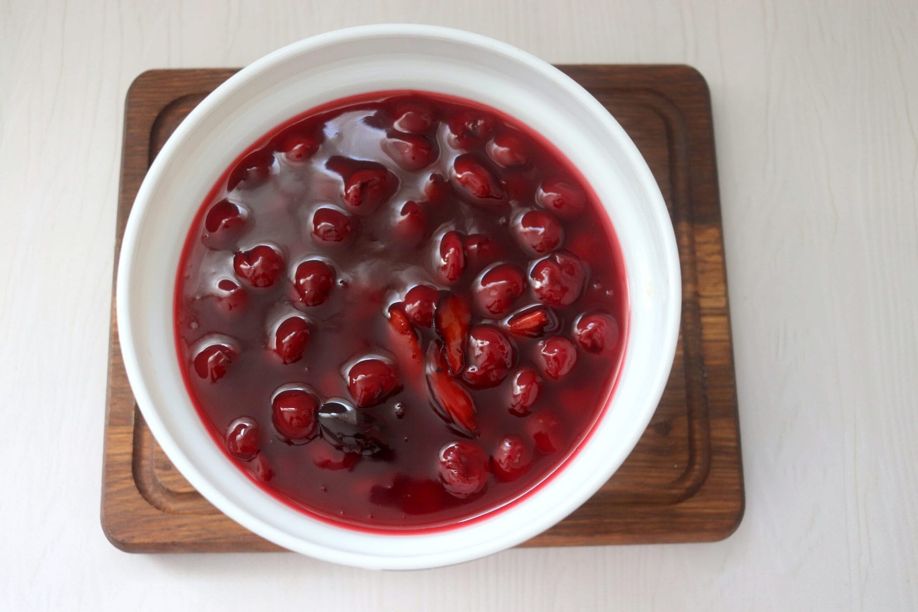 You will notice how the syrup will thicken, the consistency will resemble jelly. Cool the cherries and it will also thicken the syrup.