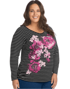 JMS Soft Flower Mix Long Sleeve Side Shirred Graphic Tee