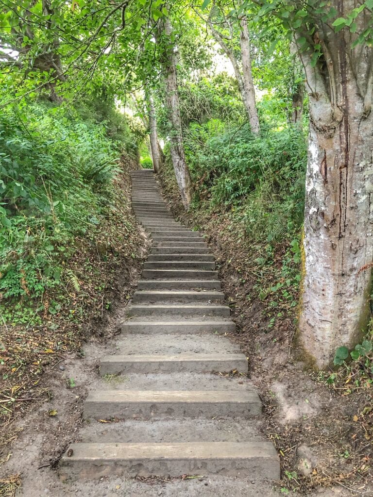 It is a very easy hike (and fairly short) to the beach from the Point No Point park access area. There is this steep set of stairs (also well maintained, but if stairs are an issue you will want to drive down to the lighthouse area).