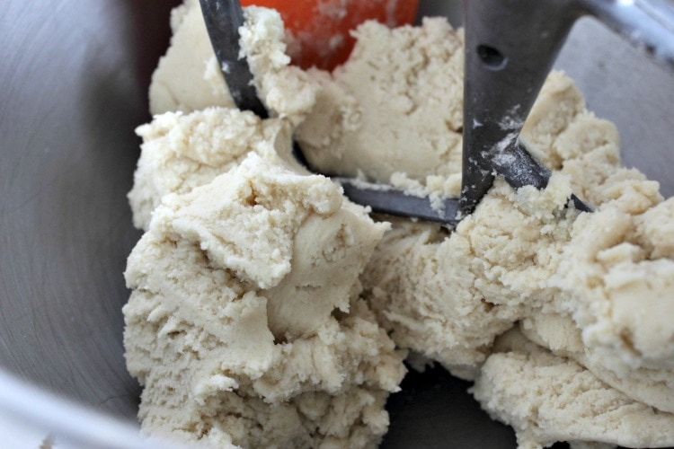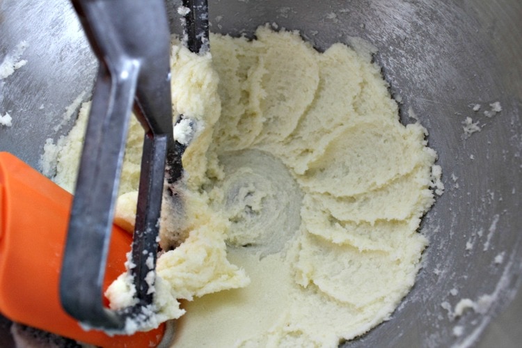 Add the flour to the mixing bowl in thirds mixing will between each addition.
