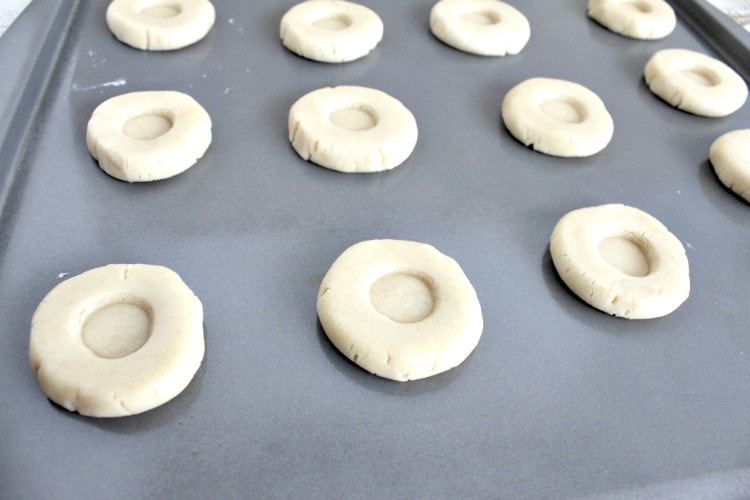 Take a wrapped kiss and form a shallow depression in the center of each cookie, about halfway through the cookie.