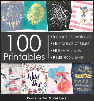 Get 100 Printable Downloads for only $10 with our promo code ThriftyNWMom, PLUS get a $10 reward card back to use on a future purchase on their website! This set is regularly priced at $40, so this is a crazy good offer. I have decorated my bathroom with their prints, simply by framing them. This pack comes with a number of sayings and pictures, so you could do so much with it. You can make teachers gifts, home decor, cards, signs (decoupage a quote sign on a block of wood) and any other ideas you can come up with.
