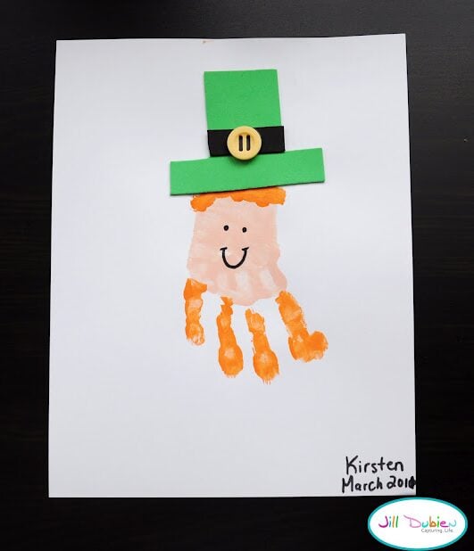 I’m a sucker for handprint crafts, so I love this St Patty’s Day handprint craft. Do these each year to see how their leprechauns grow! :)