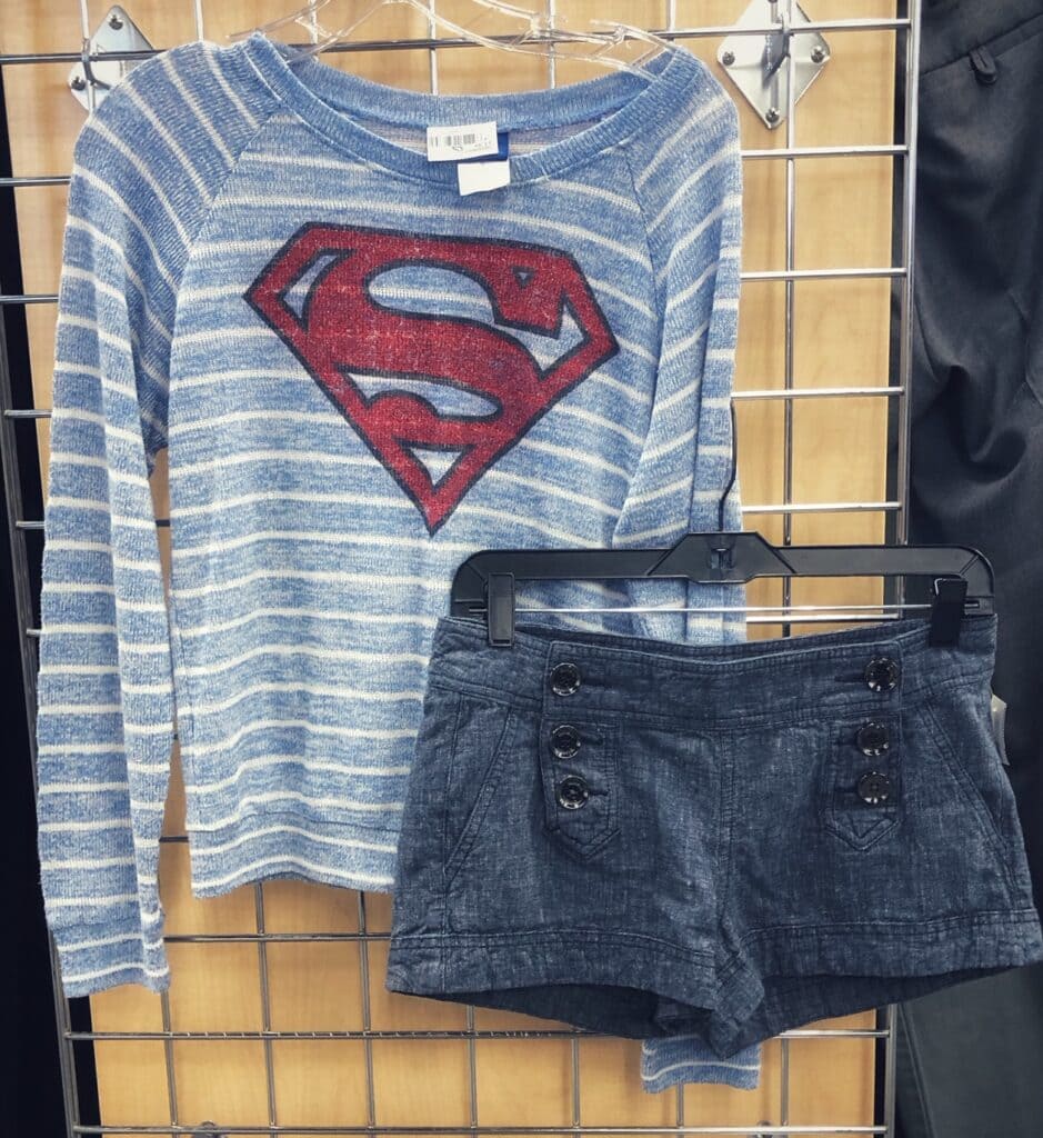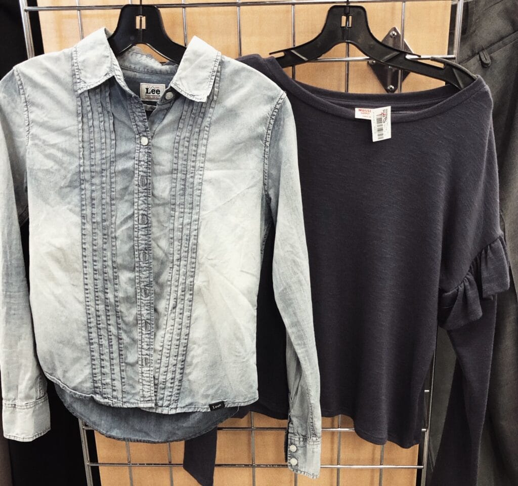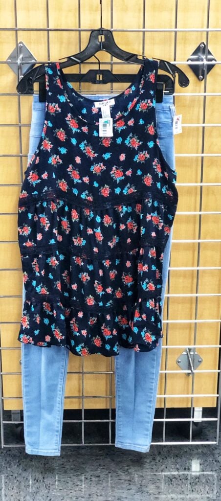 Many of the Goodwills have a Jrs. section this time of the year. That makes it much easier to do the shopping for those tweens and teens too. We found most of the outfits we show here in the Jrs. area of the Goodwill we were shopping at, so it really did not require a ton of hunting. It was all right there for the picking.