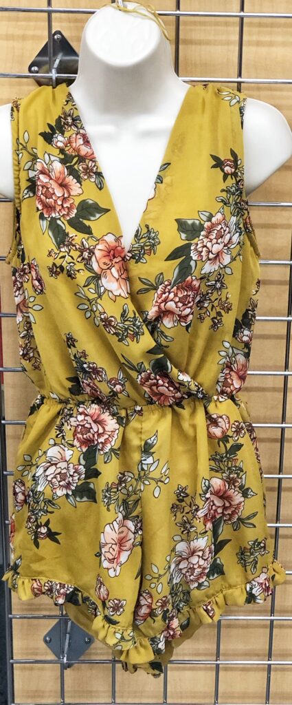 Here is another example of a real outfit in a local Goodwill that you will find for much more in the malls right now. We often see warm weather at the beginning of the school year, and since they only can wear it for a shorter time, I do not want to spend too much on those items. Grab a cute sweater, and you will be able to wear it longer (or maybe you will find a romper with pants!). If you can find them at Goodwill like we did, you will save big! This romper was just $5.99. I have seen them in the mall for around $15 being clearanced out, so this is a great price.