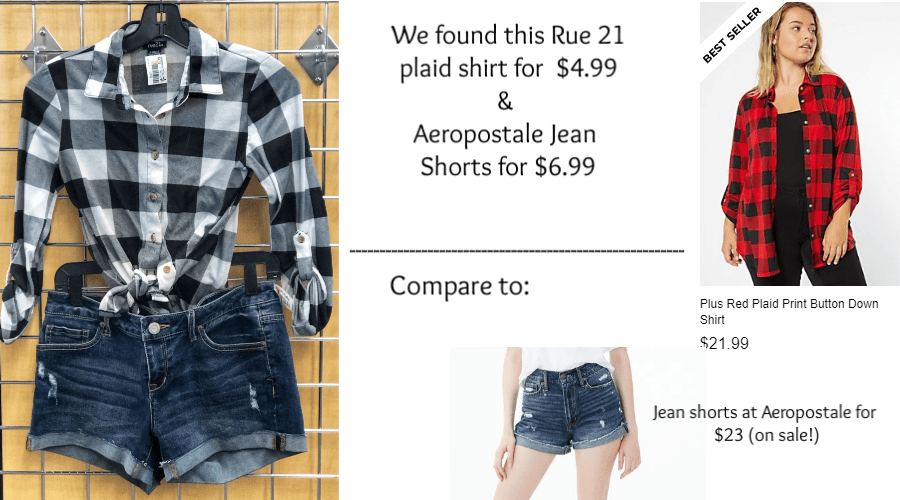 I was just out in the malls with my kids, and they both wanted plaid shirts. I was surprised at how much simple plaid shirts go for. A great alternative is to shop for trendy items at Goodwill, and pay a lot less for them. We found plaids in our local Goodwill for around $4.99 (compare that to the example I show you from the mall for $21.99 – same brand of shirt, just different colors, to give you and idea of how you can keep your kids trendy but save big).