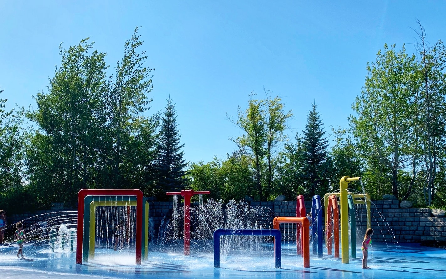 We love this spot, because it sits back from much of the rest of the park, and is easy to let your kids play while you watch them. There are fewer crowds here, so it is a great meeting spot in the water park. Polliwog Park is another fun spot for younger kids, with slides and a dump bucket, but it will be more crowded.