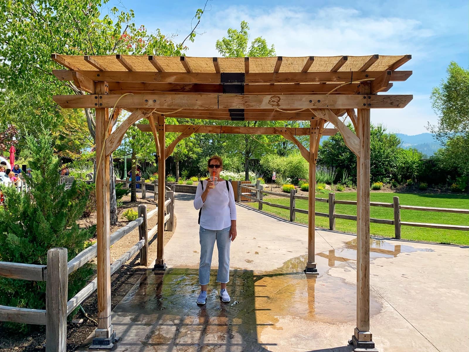 There are plenty of chairs and benches throughout the park. We even found these nice little spots that spray out water to keep you cool. One of my moms favorite spots to sit for a minute though, is the Quiet Garden.