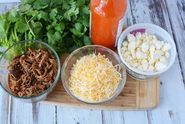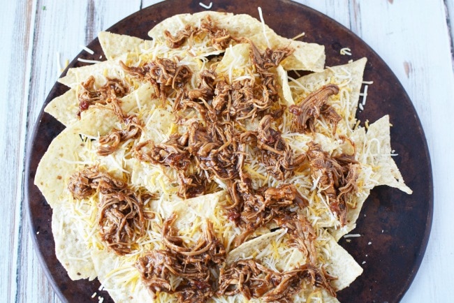 If you are making your teriyaki chicken from scratch (verses using leftovers from a previous meal), you can use this 3 ingredient teriyaki chicken recipe here. This is also a great recipe to make, and double it up, and freeze half of the chicken to make these Spicy Nachos another night in the week. The chicken freezes well, and you can then thaw it out and warm it up in the microwave or over the stove to use in this recipe (if you have not done freezer cooking before, we have some tips on that here).