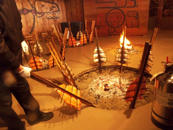 When we arrived at the island we were greeted with a cup of steamed clams to enjoy. You can then take a few minutes to enjoy the artwork, watch the salmon cook etc., but the doors open for dinner fairly quickly. You are seated cafeteria style (so you may end up sitting next to someone you don’t know).