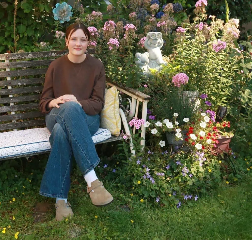 This is my other teen relaxing in our front yard in her crewneck (the same Time and Tru one we mentioned above for $13,98) and the Celebrity Pink Wide Leg Slouch Jeans. We have shared these jeans before, and they were a big seller, since they are only $20.50 a pair. They come in two washes, and she is wearing the darker one. She has some long legs, so the jeans fit her perfectly, but if you are not as tall as her, then they will give more of that slouch effect.
