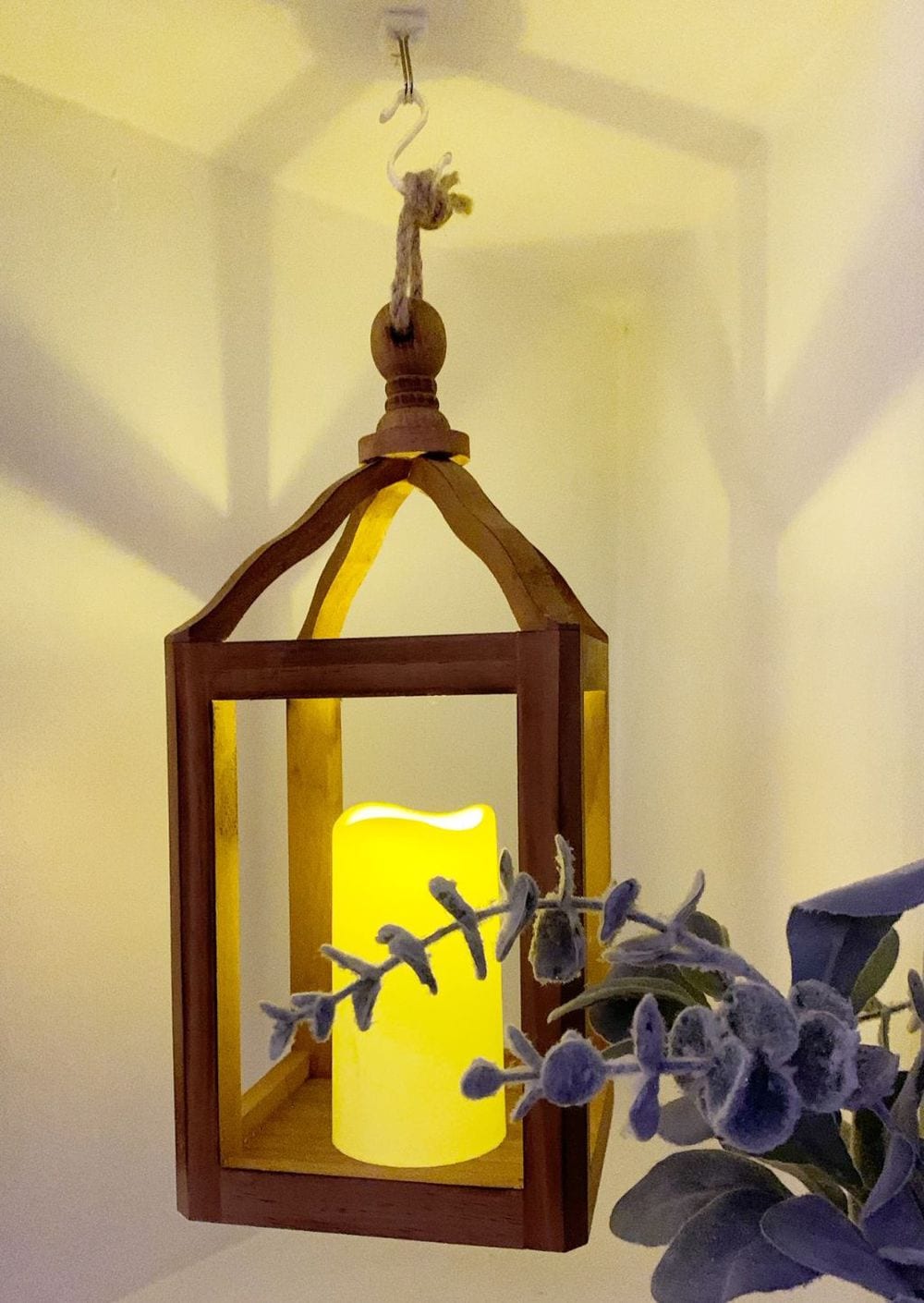 I just picked up these wood lanterns (they were so affordable I could not pass them up) and use them to add some ambiance to my mantle area this time of the years. I just hung them with some Command Hooks (did I say how much I love that I can get it all at Walmart, and not have to make multiple stops) and am obsessed with them!