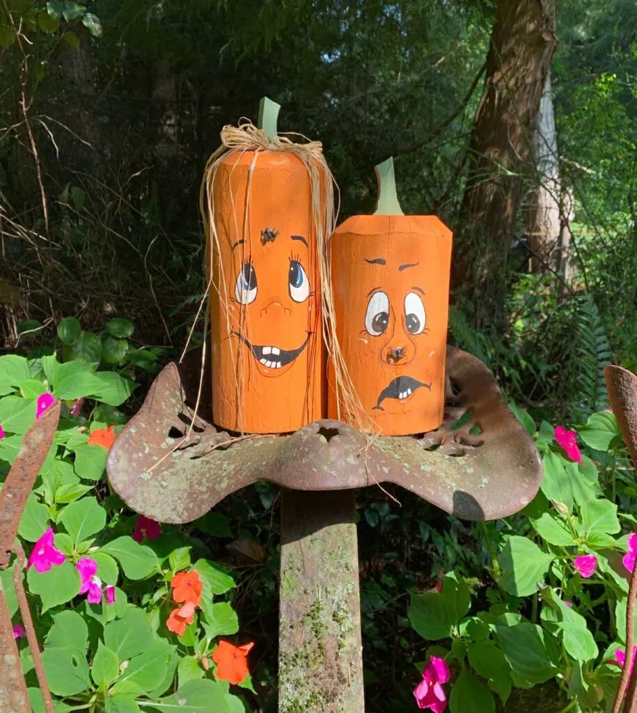 Or use this same idea to do wooden pumpkins, but paint their faces on instead!